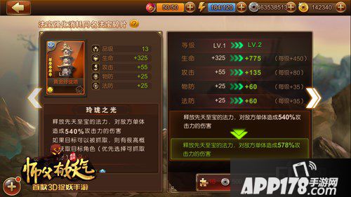 《师父有妖气》中的所有法宝总共分为白色、绿色、蓝色、紫色和橙色5大品阶,颜色越靠后,对应的品阶越高,法宝也就越强大。强大的法宝不仅具备强大的加成属性,根据种类的不同,每种法宝还自带特殊手动技能,在战斗中可发挥不同的作用。