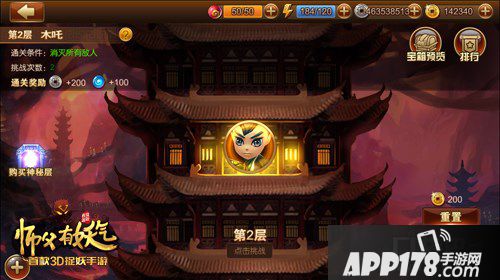《师父有妖气》的试练塔中包含了来自三界的精英妖怪,玩家需要从塔底到塔顶逐级挑战。随着层数的增高,妖怪的实力以及获胜后的奖励也会逐渐提升。每完成5层会有一个BOSS镇守,挑战成功后即可获得一次大奖。