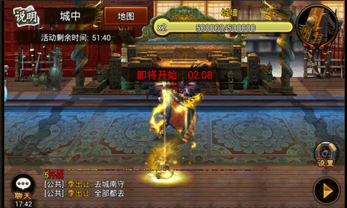 群雄争霸玩法开始后,进攻方在限定时间内摧毁城墙,占领防守方军旗即可获胜,反之防守方获胜。攻方玩家贴近城墙视为进入攻城状态,此时会持续对城墙造成伤害;而防守方玩家贴近城墙则能增加城墙防御,延缓城墙受损速度。紧贴城墙的攻守双方都可以点击近距离的敌方玩家触发战斗,战斗失败的玩家会被传送回各自复活点等待复活。另外在战斗中,领地主还可以使用各种特殊效果的锦囊。