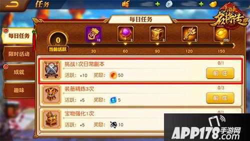 每日任务中挑战1次日常副本,奖励50个突破丹。
