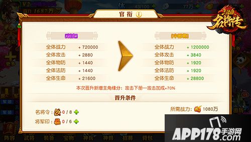 只要主公们满足以上两项条件,即可晋升官衔,大幅度提升战力。