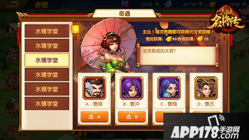 水镜学堂:知识问答题,答对可获得50元宝,答错也无妨,也可获得25元宝。