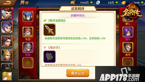 武将羁绊是通过收集和上阵同阵容中的关联武将来激活,增加该武将的攻击和生命的小型图鉴。