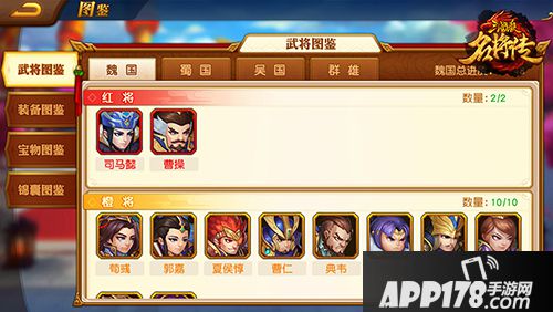 武将图鉴是游戏内所有武将的总览,根据阵营划分,主公只需要点击武将头像,即可查看到该武将的定位、技能效果、天赋、神兵、名将册、羁绊、觉醒天赋以及一段有关该武将的历史简介等资料。
