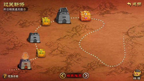 在“挑战”玩法中,玩家需要一路闯关打败守关的武将才能领取关卡之后的宝箱奖励。而该玩法也分为普通难度以及精英难度,挑战关卡失败后,也无需气馁,可以再次进行挑战。在战斗失败时,普通难度的关卡不可复活,精英难度关卡可以复活。