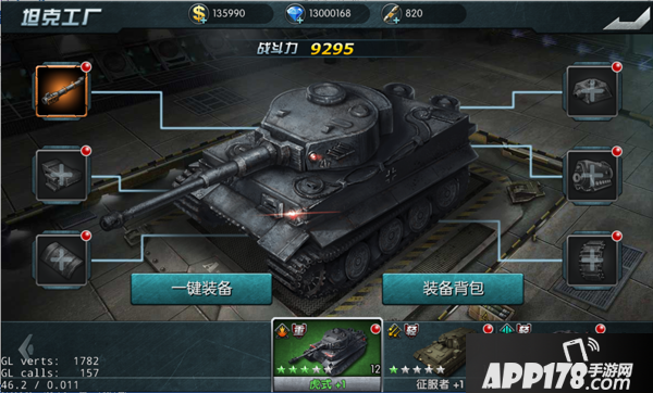 小提示:一件装备功能,能够让系统自动装备当前背包内最强的装备自动安装正在坦克上。(非常便捷的功能)