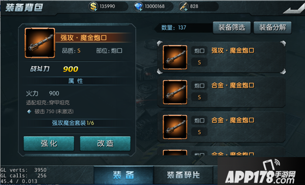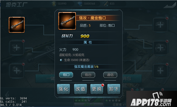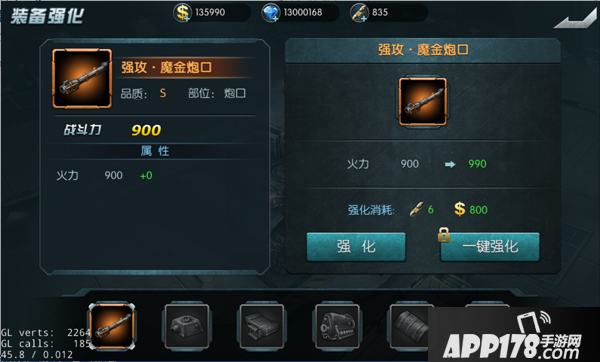 进入坦克背包或者直接点击坦克已安装的装备,点击“强化”按钮。