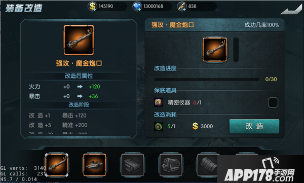 改造将会消耗‘改造合金’与金币。同时随着改造次数的变多,改造成功的几率也会不断下降。这时我们就需要在改造时加入道具‘精密仪器’来提高成功率。使我们的材料不会付诸东流。(不要不舍得该用还是要用的,不然到头来一场空。)失败了可是会降级的。