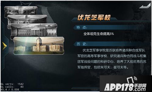 伏龙芝军事学院前身是苏联时期根据列宁指示创办的工农红军总参学院,旨在从工农中培养具有高等军事文化程度的指挥干部,苏联解体后改为伏龙芝军事学院。伏龙芝军校能为全体坦克提供生命值提高5%的属性加成,是厚血型坦克玩家的不二之选。