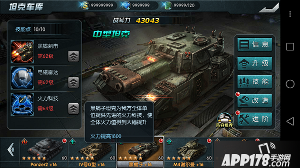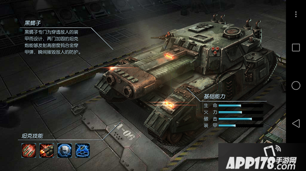 黑蝎子坦克为我方全体单位提供先进的火力科技,使全体火力值得到大幅提升。