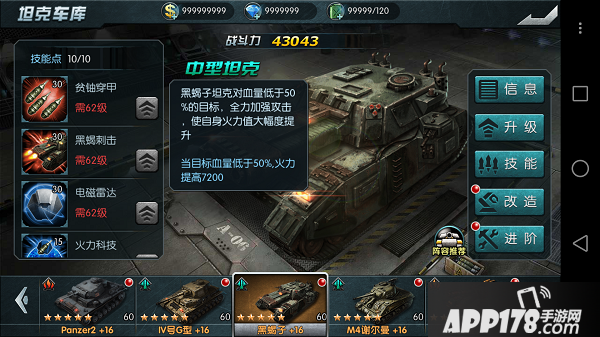 黑蝎子坦克对血量低于50%的目标,全力加强攻击,使自身火力值大幅度提升。