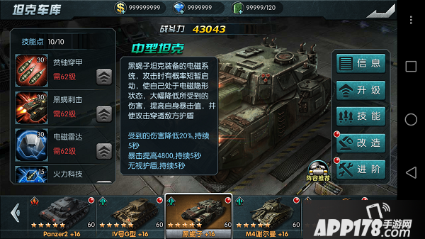 黑蝎子坦克装备的电磁系统,攻击时有概率短暂启动,使自己处于电磁隐形状态,大幅降低所受到的伤害,提高自身暴击值,并使攻击穿透敌方护盾。