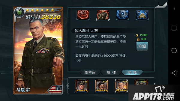 马歇尔知人善用,使其指挥的单位受到攻击有一定的概率获得护盾,持续一段时间。