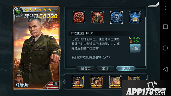 马歇尔指挥的单位,使全体单位拥有超强的对中型坦克的抵御能力,大幅降低受到的中型伤害。