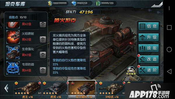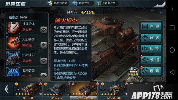 双火骑兵坦克为我方全体单位提供针对特殊类型的炮弹的防御科技,使我方受到的火炮伤害和中型伤害大幅降低。