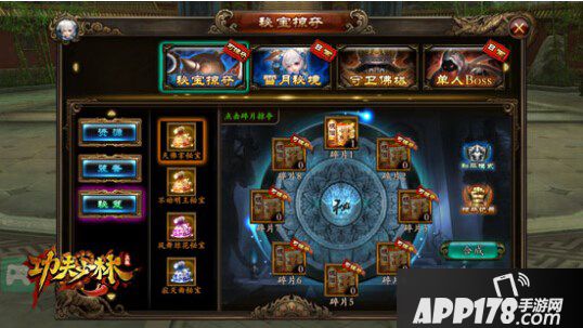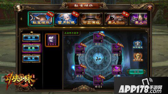 对于所有玩家来说,好的装备大家都会心之向往,因为装备是提升战力最显著的方法之一。在《功夫少林》中获取普通装备途径十分多样,但是高级装备却很难得,往往需要依靠碎片合成、抽取宝箱或打高级BOSS才能获得。“秘宝掠夺”的装备界面,有直接可以掠夺的紫装碎片。这个基本上是数值比拼,时间节奏快、成功率高,所以是非常推荐大家每天必做的。“组队BOSS”每天限时开放,玩家可以通过召唤好友一起完成击杀任务,获取排名获取奖励,中后期玩家十分适合此副本,实力雄厚的玩家可以直接获取终极装备!