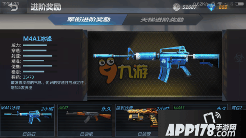 并且游戏中枪支来源的途径很多,除了常见的钻石购买,还有军衔进阶奖励、天梯进阶奖励等。