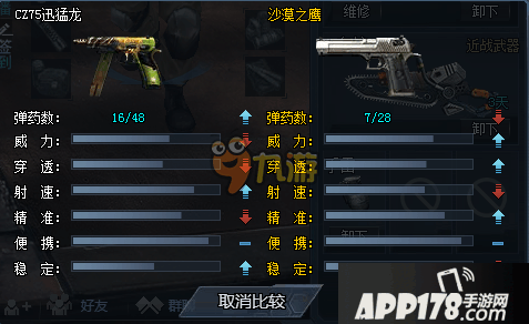 在大部分玩家都以各种型号的沙鹰为副武器的时候,我发现了独树一帜的CZ75迅猛龙童鞋,超高的射速和稳定的输出能力,使其成为了狙击手副武器的不二选择,在面对绕后和突脸的敌人时,掏出迅猛龙,疯狂的倾泻火力吧!