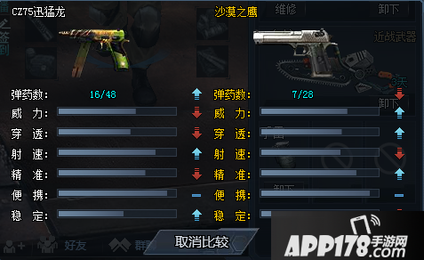 在大部分玩家都以各种型号的沙鹰为副武器的时候,我发现了独树一帜的CZ75迅猛龙童鞋,超高的射速和稳定的输出能力,使其成为了狙击手副武器的不二选择,在面对绕后和突脸的敌人时,掏出迅猛龙,疯狂的倾泻火力吧!