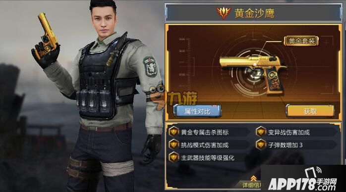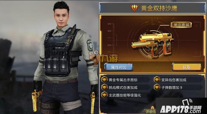 介绍:双持黄金沙鹰手枪,战场上尊崇豪放的金,和黄金沙鹰相比两者是不差上下的,