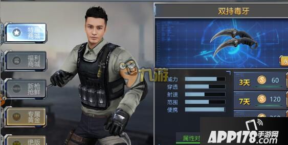 在这次的生死狙击手游测试中,将会有不断的有免费的武器可以获取哦!其中双持毒牙就是这次免费武器的其中一员,单是看外表你就会觉得它很霸气了,但是它的技能也是你想象不到的哦!但是有很多玩家反映说在使用的时候不是很顺手,不知道要怎么用,那么在接下来APP178手游小编就来和大家详细的说说生死狙击手游双持毒牙使用技巧,想要了解的小伙伴们一起来看看吧!