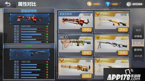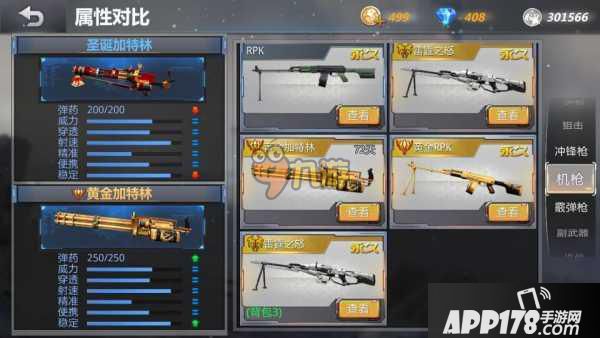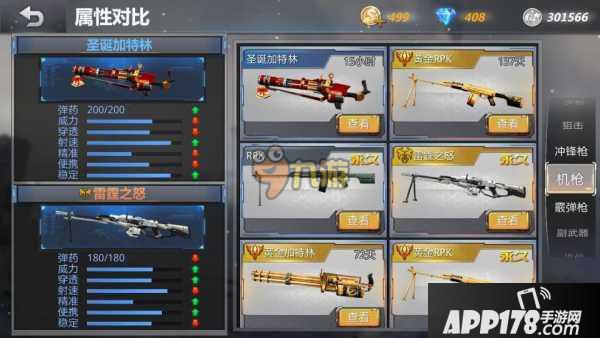 首先是和我们的黄金加特林,通过对比图来说呢,圣诞加特林和黄金加特林相比还是有一点差距的,黄金加特林在弹药,和稳定方面超过圣诞加特林一些。但是好在差距并不是太大。在其他方面两把枪都是相同的。但是从外形方面来说呢,启辰比较喜欢圣诞加特林 ,黄金加特林全部都是金黄色,虽然土豪,但却没圣诞加特林好看,而且从价格方面来说,圣诞加特林比黄金加特林便宜的多。