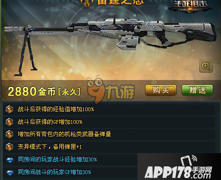 武器特点:1.超炫外观 2.威力强劲 3.超大弹匣 4.多重特效 5.射速快