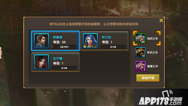 提升等级是提升追随者战斗力的根本部分。消耗追随者经验书即可升级。追随者经验书可从遗迹副本和水晶石获取。