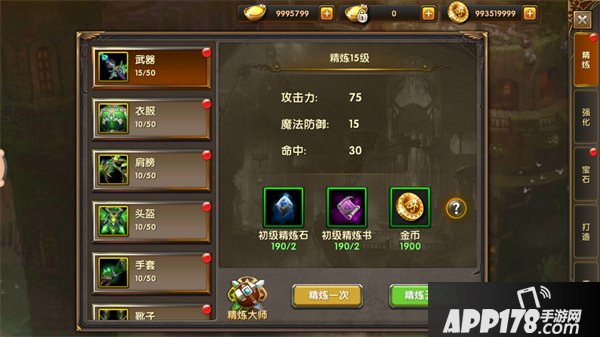 玩家可以通过消耗精炼材料,多次精炼某个装备部位。精炼可以绝对值提升装备的基础属性,更换装备时精炼等级保留。