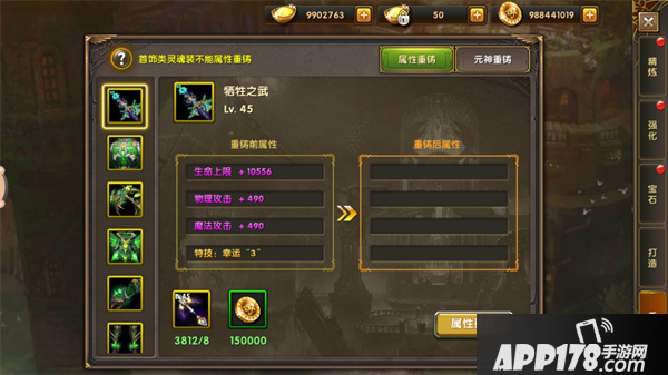 属性重铸:重铸灵魂装备,以获得更高灵魂属性,并更换特技幸运数字。