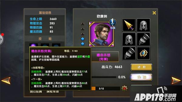 欧康纳的职业是刺客,护主技能为“嗜血杀怒”,可以大幅提升玩家的物理攻击、魔法攻击、生命上限以及闪避,其品质更是达到了完美级别,可以说是非常不错的。