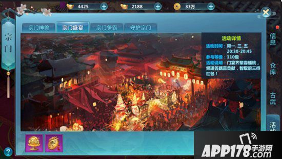 每周二、四、六三天都可以参加守护宗门活动。玩家跟宗门的道友一起守护,抵御进攻的敌人,只要获得胜利就可以获得海量经验,这样是玩家后期获得经验的主要来源。
