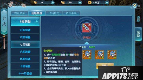 装备合成可以使用相同的装备合成更高品质的装备,不过合成装备最低也要红色装备,因此材料装备必须是橙色装备。太低级的装备没有合成必要,所以玩家还是先去刷一些高等级副本,尽量多攒一些橙色装备再来合成。