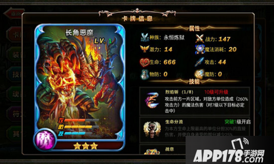长角恶魔成长方面是偏重防御,攻击能力与技能效果相对较为平均一些。