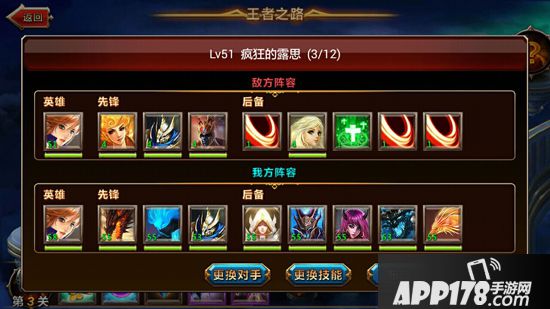 由于王者之路的敌人是在挑战每个关卡时根据玩家的即时战力随机选取的,在战斗时没有什么投机取巧的可能,完全要看玩家的个人水平和战术素养了。