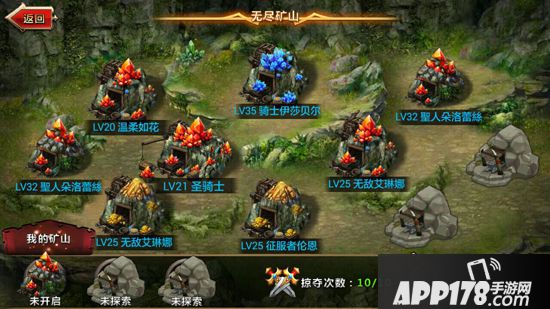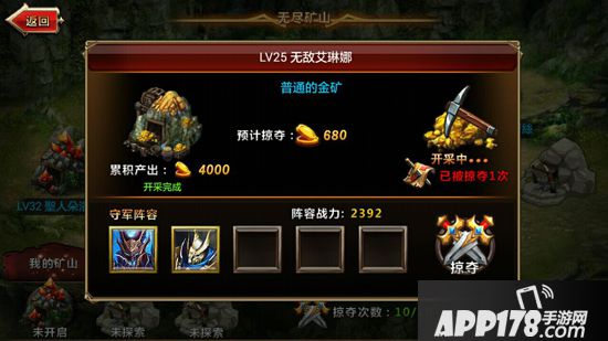 游戏中,玩家可以同时开采三个矿山。如果玩家认为这样获取资源太慢的话,可以选择对其他玩家的矿场进行掠夺,但掠夺者必须跨过我们的守卫英雄才能够拿到对应的资源奖励。所以为了保证自己开采资源的安全性,守备英雄的选择上,玩家还是要派出自己主要培养的英雄,防止某些玩家专门捏“软柿子”。