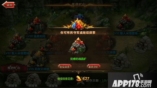 在玩家升级到19级时,《神魔之战》将开启矿山玩法。点击矿山按钮,玩家将会被随机分配到一个矿物进行开采。等级越高的矿物,所能产出的对应资源也就越多,如果玩家们对随机分配的矿不满意的话,可以消耗金币重新分配。在分配到了自己喜欢的矿物之后,玩家需要派出自己的英雄进行守卫。