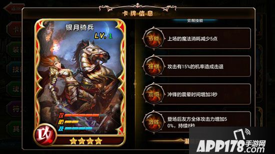 觉醒之后的银月骑兵能够降低自己上场的魔法消耗,增强自己的攻击能力,激阵效果能够在登场后增加全体50%的攻击力。