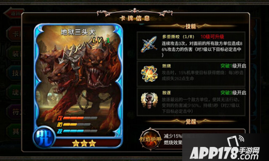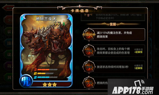 《神魔之战》手游中地狱三头犬怎么样?地狱三头犬每一个头都咧着长满獠牙的血盆大口,外表凶悍冷酷,内心温柔强大。那么它的战斗表现怎么样?下面小编为大家分析一下游戏中的地狱三头犬的属性详解,希望能够帮助大家。
