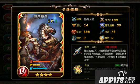 《神魔之战》面对数量众多又独具特色的英雄们,玩家需要分析英雄们的优缺点。有的英雄擅长对敌人造成巨大的打击;有的英雄可以为友方承担大量的伤害;有的英雄擅长控制住敌人,为己方创造良好的作战环境。这些都是要考虑到的,通过精心挑选,来打造属于自己的最强战队。下面小编就来介绍一下银月骑兵这位英雄的使用攻略!