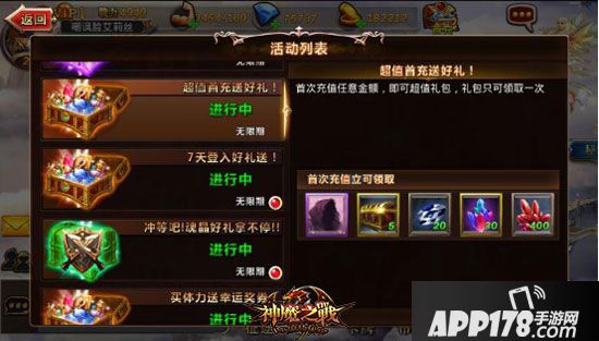 《神魔之战》里,玩家只要充值任意金额,都可以获得超值礼包哦!超值给力的宝箱、稀有的魂晶什么的,随意带走!小小的一块钱,也能获得以上的丰厚好礼哦!是的,你没有看错,运营团队就是这么任性!