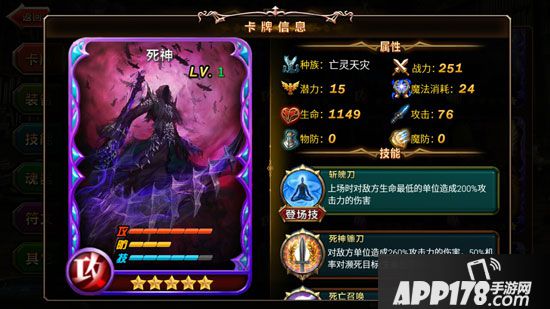 在《神魔之战》中,死神的定位就是收割者。他的技能能够对敌方血量最低的单位造成大量的伤害,让敌人迅速减员,无法抵挡我方的猛攻。死神的另一个强大之处在于能够将我方阵亡单位回收至手牌,对队伍的续航有着重要的意义。最容易获得死神的渠道是召唤殿堂中抽卡拼手气。