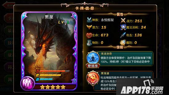 在《神魔之战》中,黑龙依然是一个强大到可怕的角色,不仅拥有超强的攻击力,在防御力上也足以与肉盾英雄相媲美。在战斗中,黑龙能够使敌方全体失去所有的治疗恢复效果,同时造成成倍的伤害。虽说黑龙还有一个治疗效果减半的小缺陷,但在强大的战力之下,这又算什么呢?想要获得黑龙,玩家需要在竞技场商店中收集碎片进行兑换,还是有一定难度的哦。