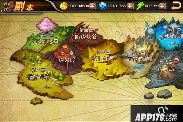 《超能游戏王》副本一共分为十六个大地图每个地图分为十个普通副本和五个精英副本。