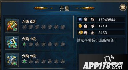 当然仅仅靠强化是不够的,升星可以直接让你的装备上升一个阶层,提升巨大的战斗力,与强化一样,升级得越高,失败几率就越大,看着战斗力蹭蹭的上涨,觉得这一切都是值得的吧。升星前期只用消耗魔晶,六阶以后开始消耗红色宝石,红色宝石的获得途径也非常多,在此就不多做赘述。