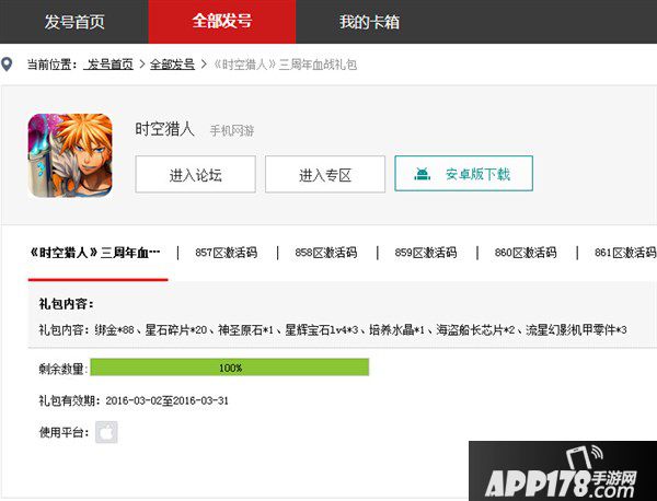 以上就是小编带来的时空猎人APP178手游独家礼包,更多有关时空猎人的精彩内容,欢迎关注APP178手游游戏专区!