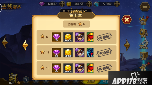 通关主线副本和精英副本后根据副本通关情况会获得不同的星级评价,每章节星级达到对应值后可以点击章节宝箱领取。不要小看这点钻石哦,前期累积下来也是一笔不小的财富哦。