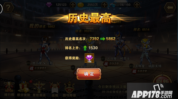 每个玩家在竞技场突破自身历史最高排名都可以获得大量钻石的突破奖励,而且每日竞技场结算时也会根据玩家当前的竞技场排名发放对应的钻石奖励。在这里,只有强者才能获取属于自己的荣耀,而钻石,这是对强者的奖励。