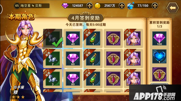 圣斗士的强大离不开每日辛勤的磨砺,同样的玩家们想要提升自己的战斗力,也不要忘记每天的签到。每日签到的奖励都不相同,不仅有金币、材料,还有钻石的奖励哦。而且不单单是每日签到可以领取奖励,累积签到达到指定次数也可以领取到不错的奖励哦。