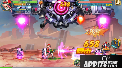 首先是跳跃,虽然是横版游戏,但是我们还是可以上下跳跃移动的,有单独的按键控制跳跃。在攻击方面有按键控制攻击,还有专门的主副枪械。射击按键周围有3个技能可进行自由搭配,上部还有一个挂载的技能栏,可释放挂载的爆发技能。
